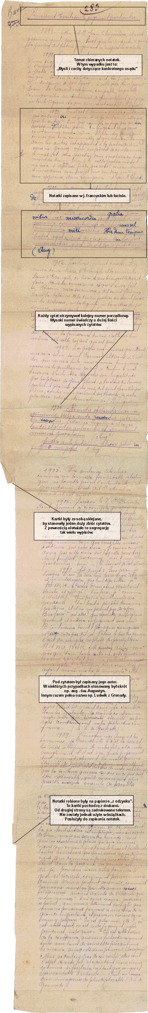 Poniżej przedstawiony jest jeden z rękopisów ks. Jana Berthiera. Oryginalny rękopis ma ok. 16 cm szerokości i 103 cm długości. Ukazuje sposób zapisu myśli przeczytanych przez ks. Jana u innych autorów.